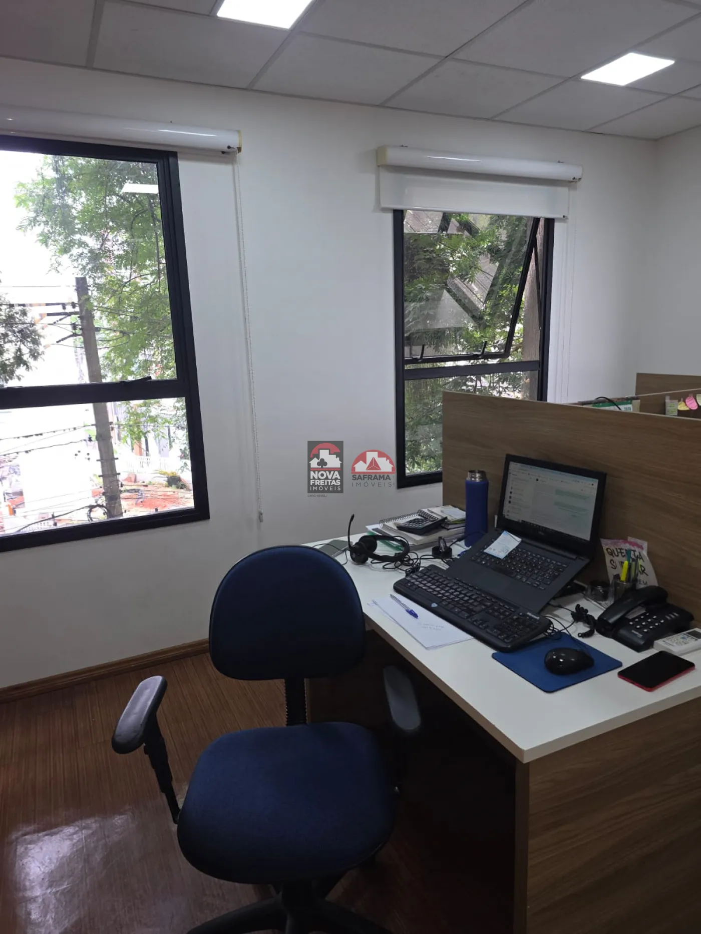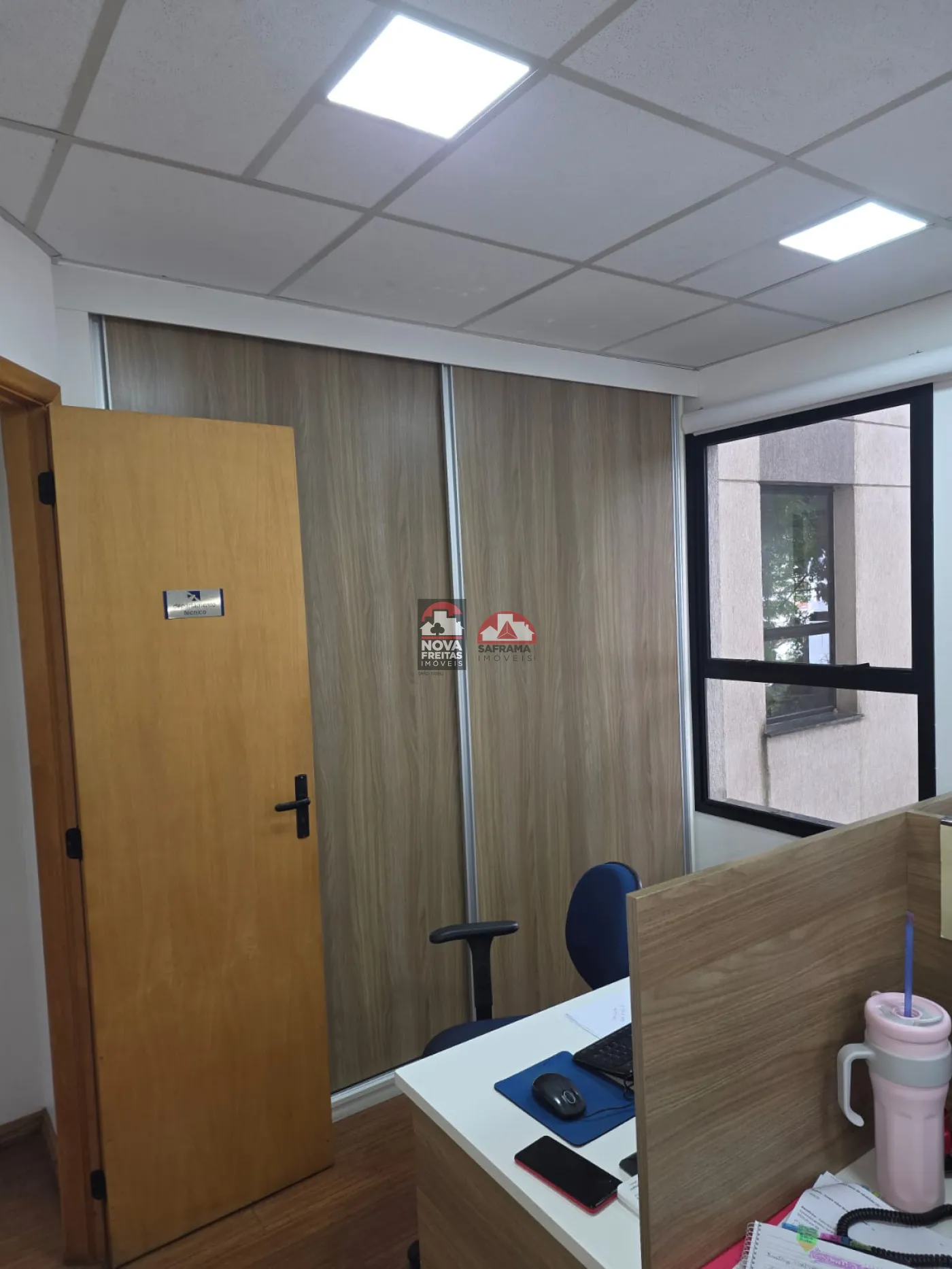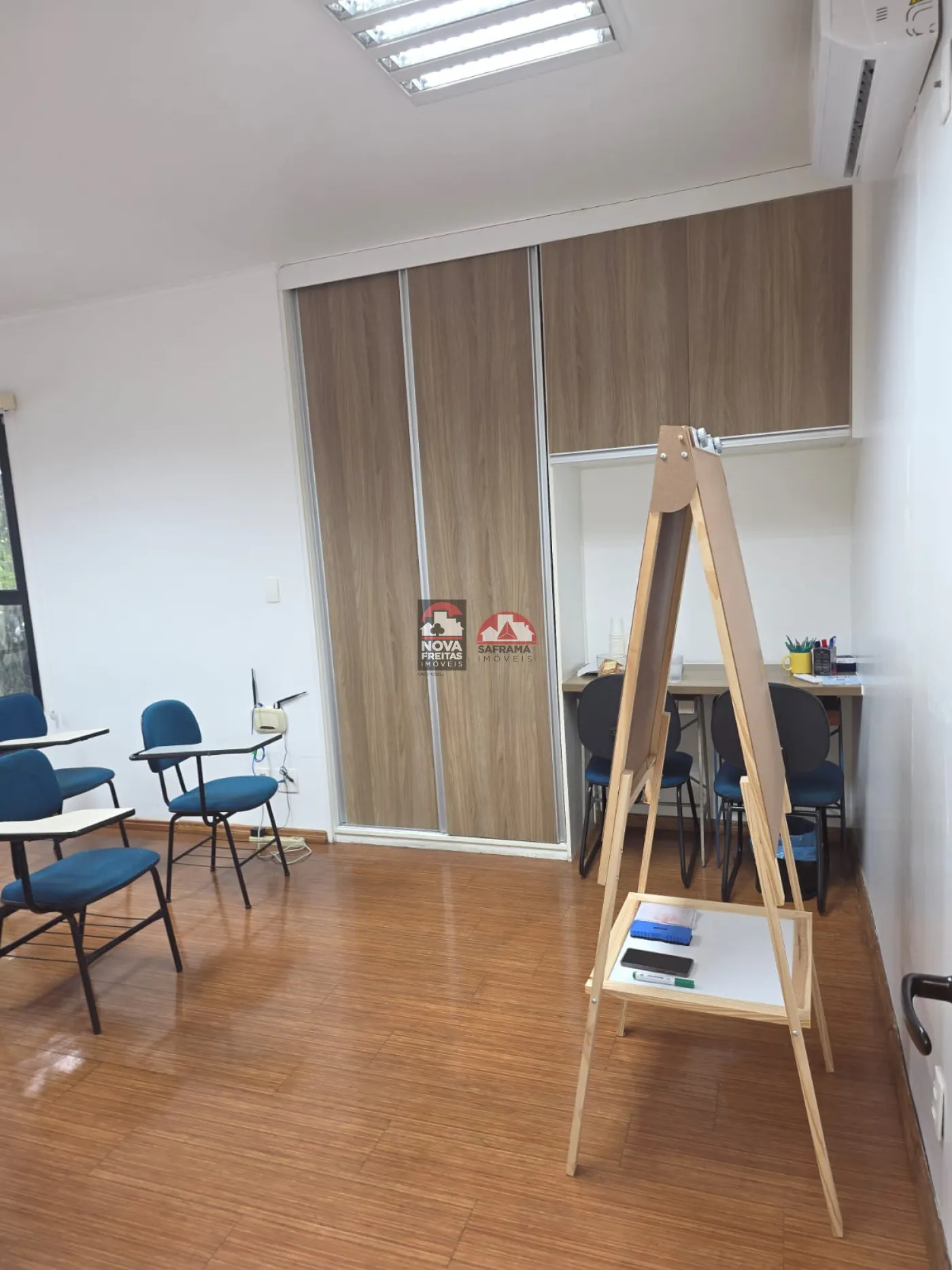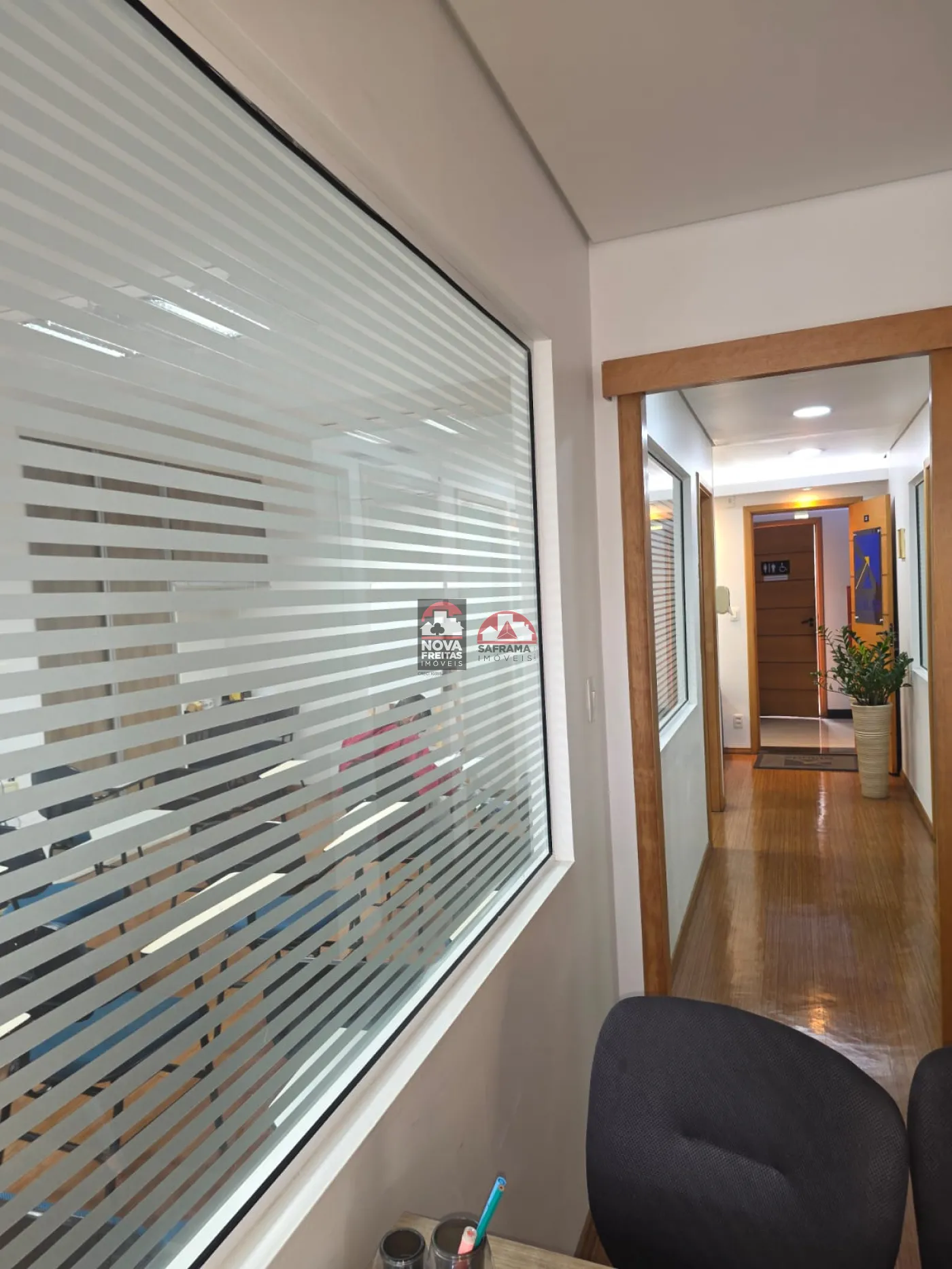 A Sala contempla 162m² subdividida com Drywall em 5 Salas com armários, uma recepção, dois WC. Possui Ar Condicionado e piso laminado em todos os ambientes.
