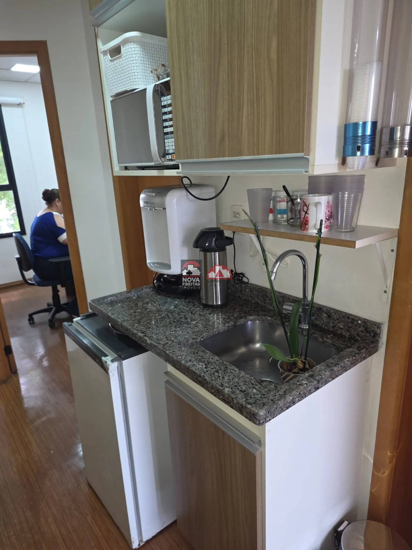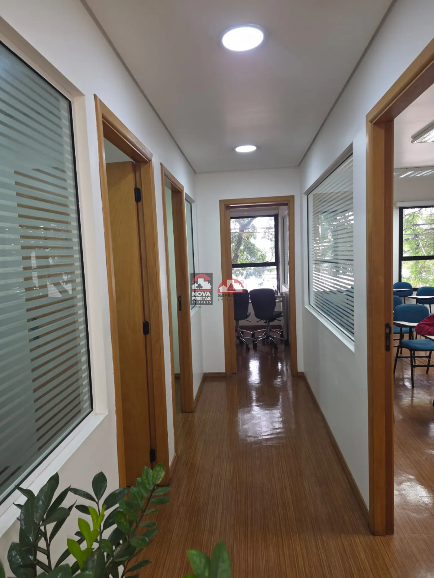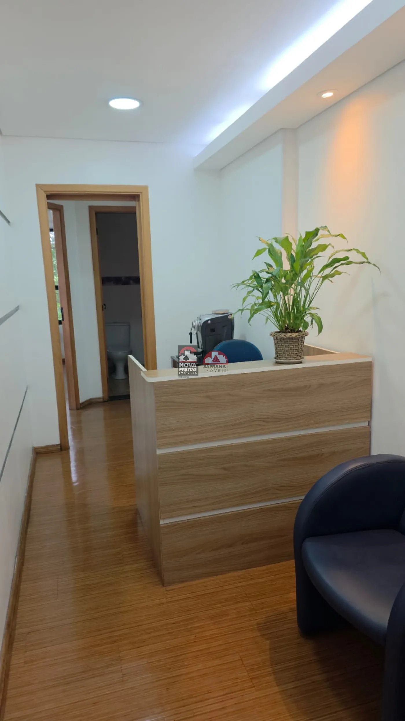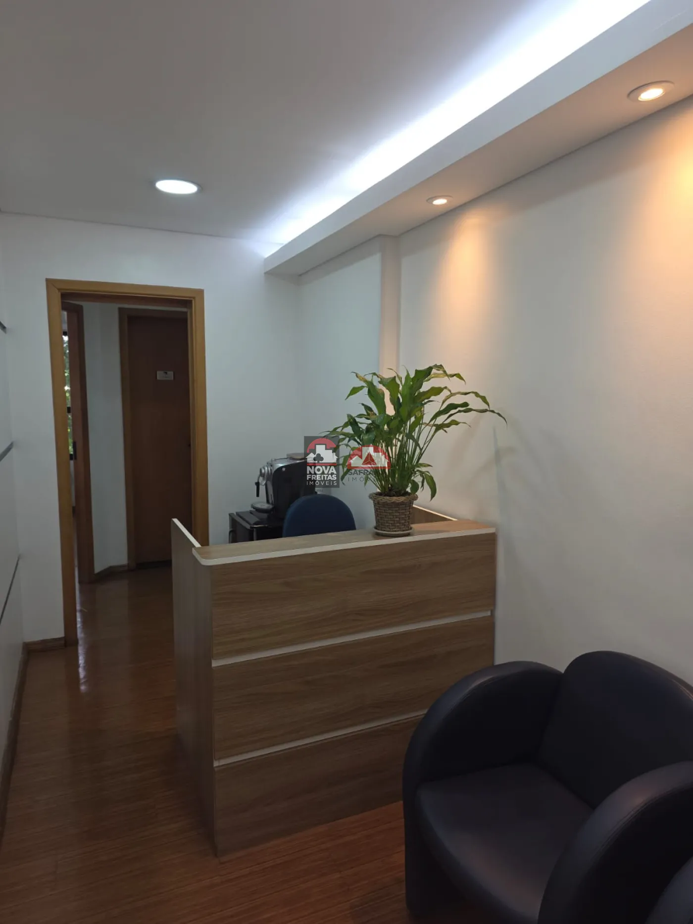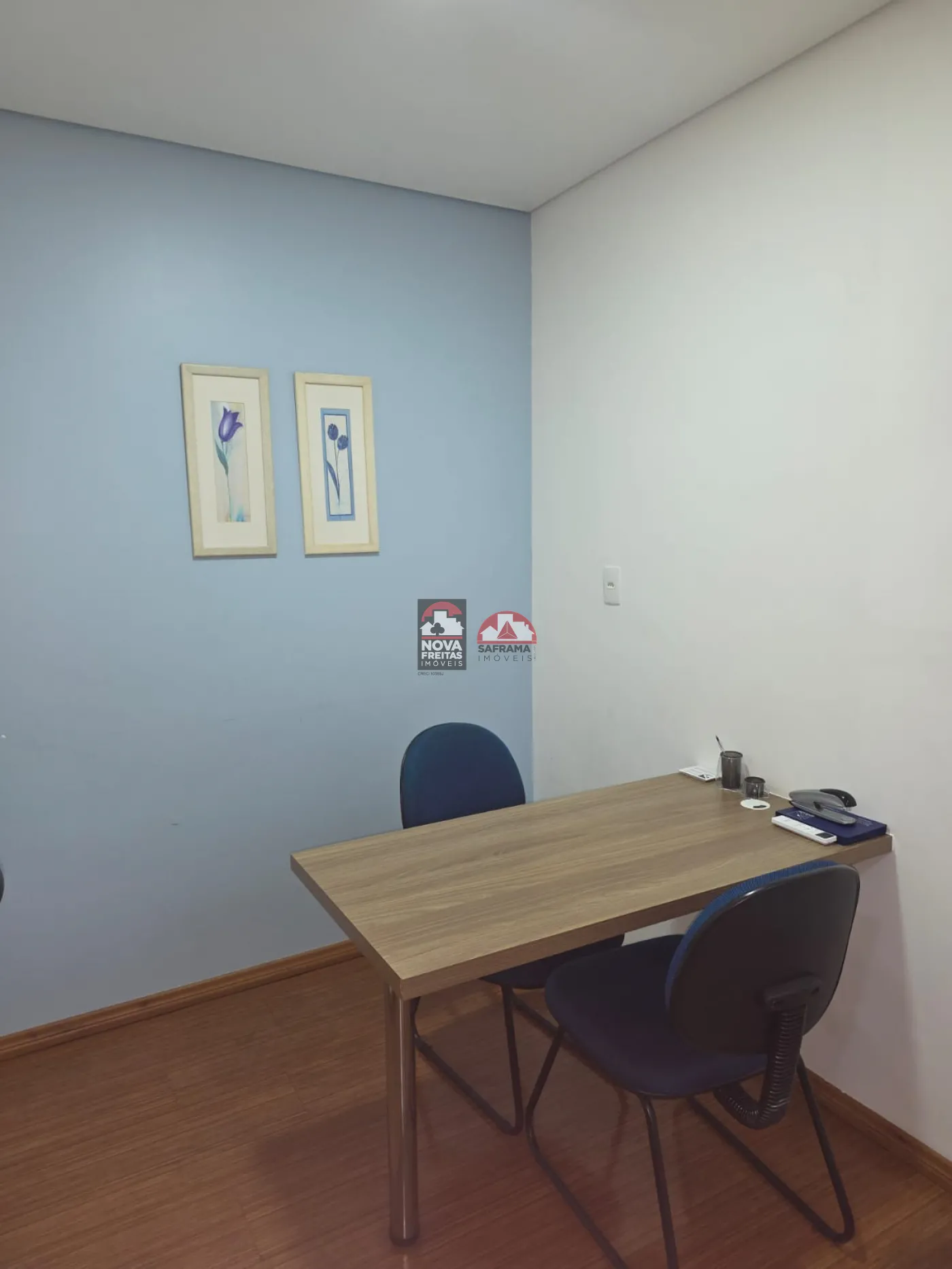 A Sala contempla 162m² subdividida com Drywall em 5 Salas com armários, uma recepção, dois WC. Possui Ar Condicionado e piso laminado em todos os ambientes.