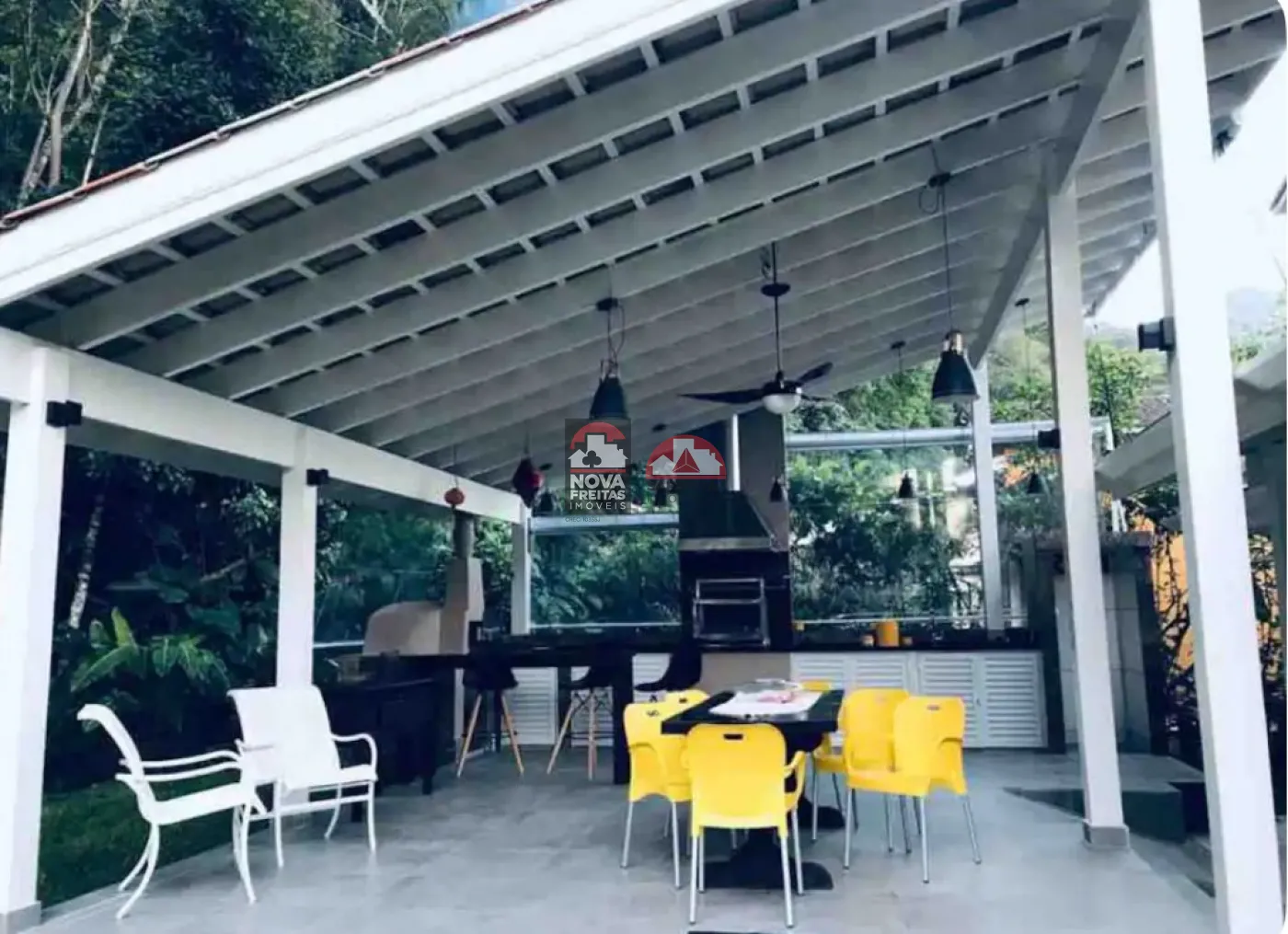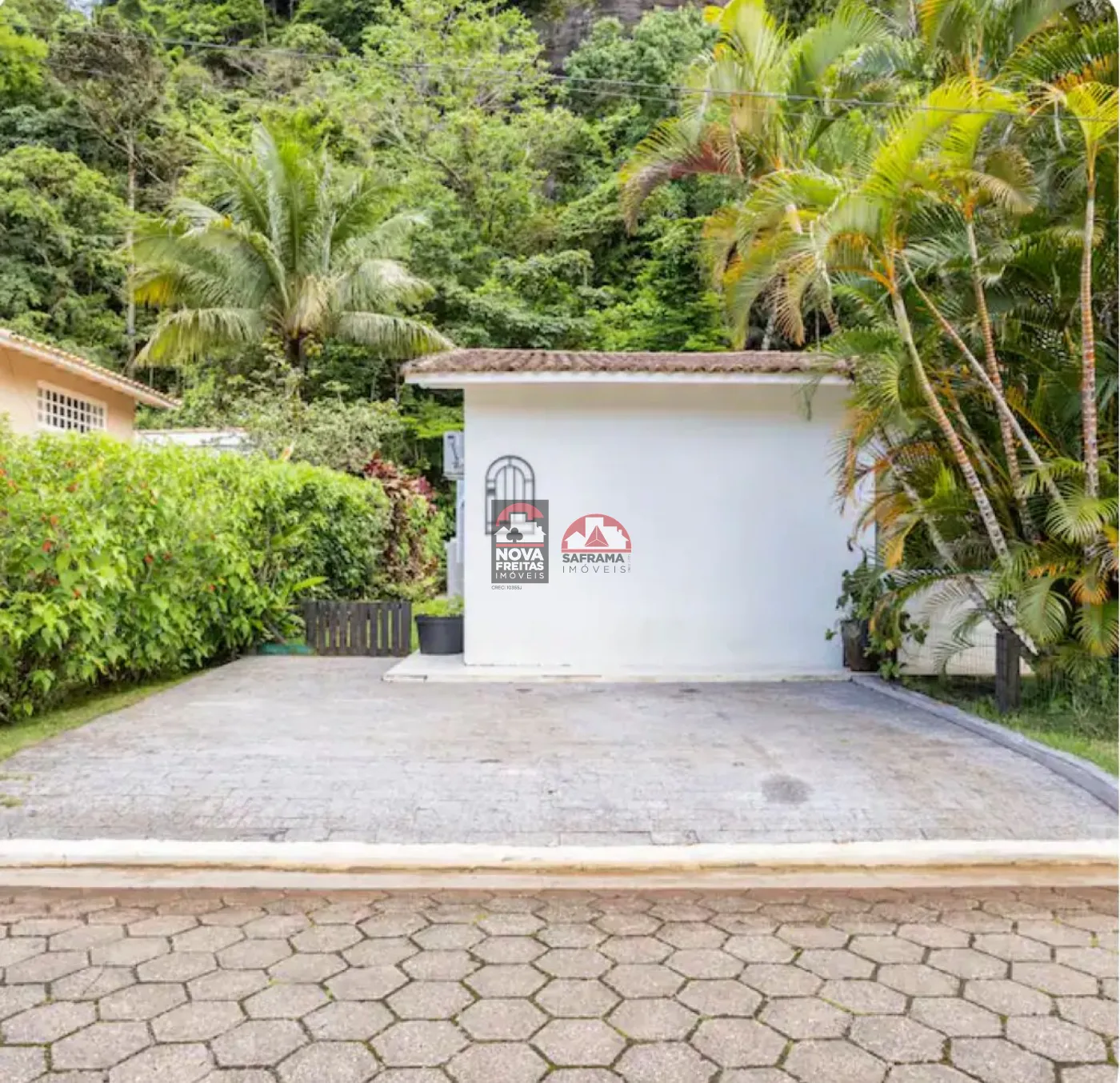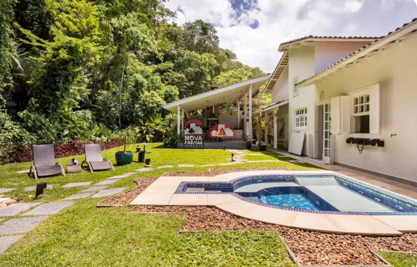 Área externa traseira voltada para a mata atlântica. Condomínio fica a 200 metros da praia, com ruas internas iluminadas e calçadas, possui portaria com controle de acesso, piscina, Jardim, sauna, Solarium e acesso privativo para praia. São 19 casas no total. Até a praia de Maresias são 10 min de carro ou 20 min caminhando por uma trilha muito agradável.