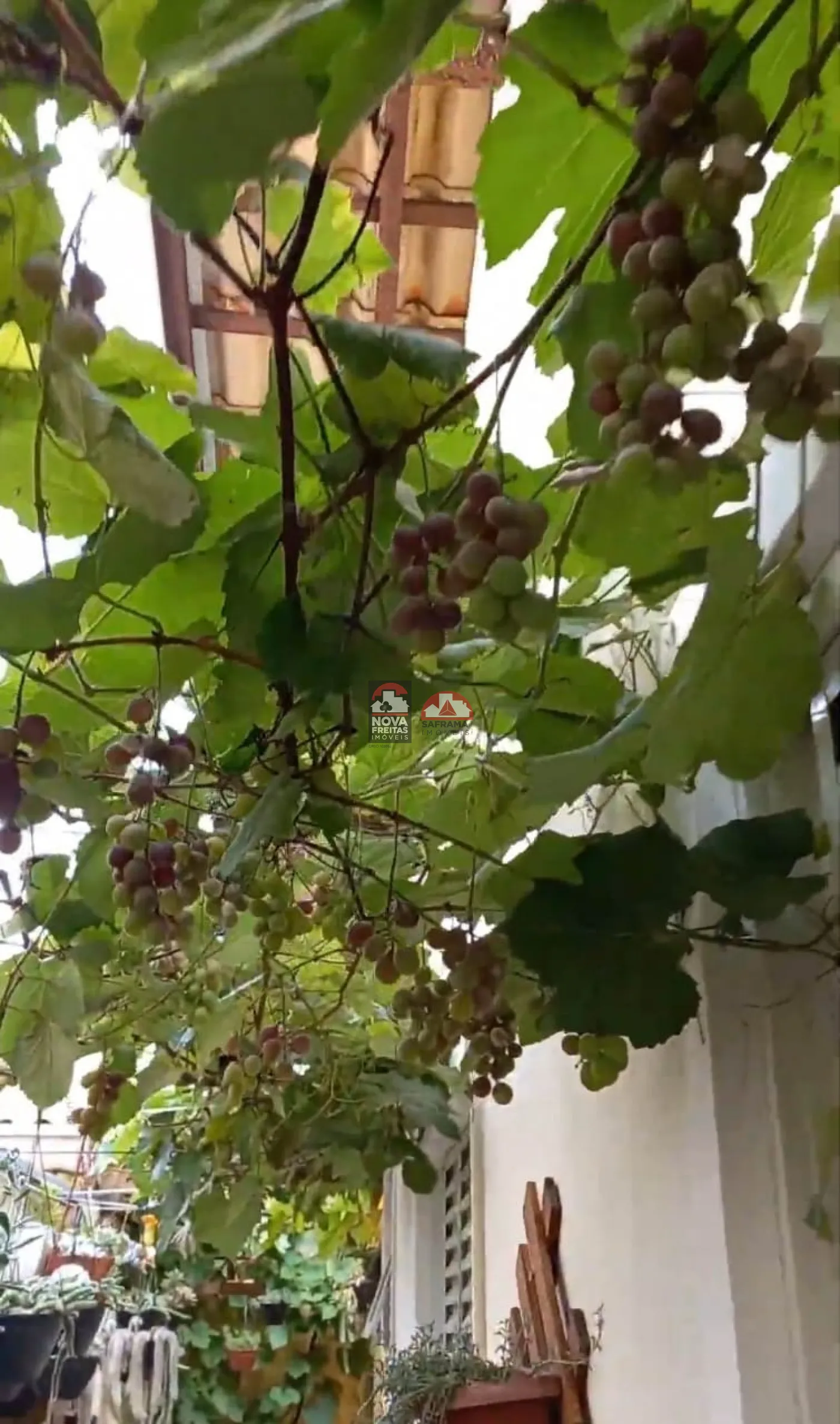 Quintal com jardim encantador, incluindo uma parreira de uvas